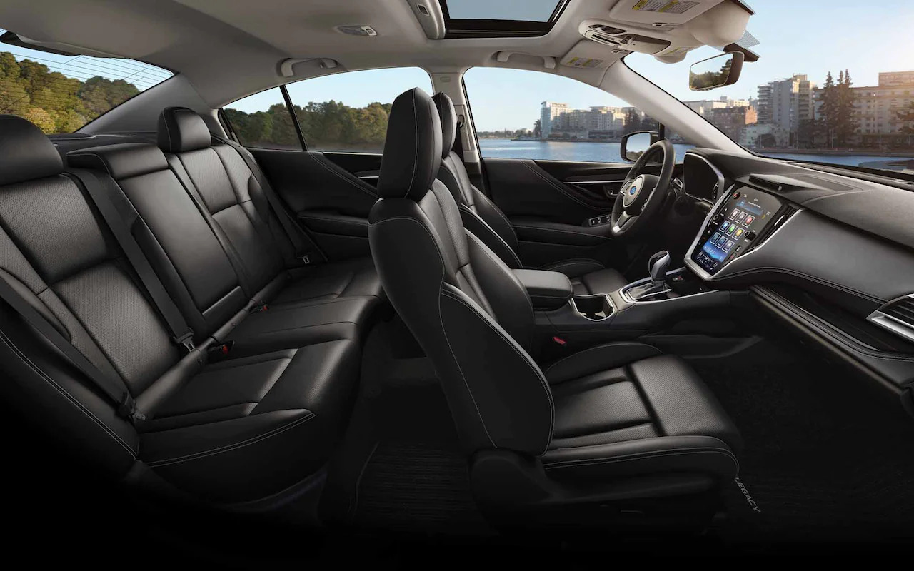 Inside the 2022 Legacy interior, you’ll find plenty of comfort and loads of style with high-quality soft-touch materials throughout. Everyone can stretch out with 105.5 cubic feet of airy passenger room – that’s more than the Toyota Camry, Nissan Altima, or Hyundai Sonata. Plus, the cabin is engineered to help reduce road and wind noise. A 10-way power-adjustable driver's seat with two-position memory function and a passenger seat with power height positioning are available to ensure optimal comfort is just a touch away.