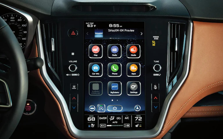 A STARLINK Multimedia system with Apple CarPlay® and Android Auto™ integration comes standard on the 2022 Legacy. To make it even easier to select entertainment and view navigation, a high-resolution 11.6-inch touchscreen is also available. Wireless pairing and hands-free smartphone operation allow for safe and easy connection to your favorite apps and content, and you can access news, navigation, music, podcasts, and more through available cloud-based STARLINK apps and SiriusXM®[15]